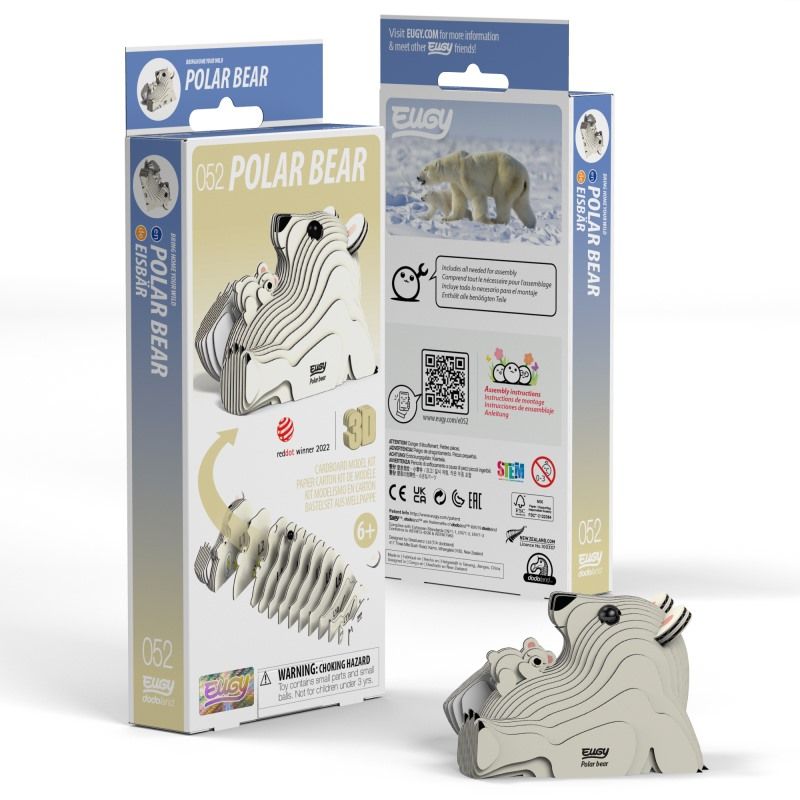 Eugy producten voldoen 100% aan de internationale veiligheidsnormen (EN71-1, 2, 3 en CPSIA). Een EUGY-pakket bevat 7 platte kaarten met individueel genummerde onderdelen, klaar om in elkaar te zetten.
