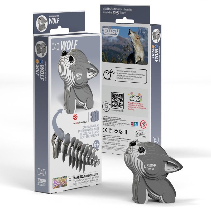 Eugy producten voldoen 100% aan de internationale veiligheidsnormen (EN71-1, 2, 3 en CPSIA). Een EUGY-pakket bevat 7 platte kaarten met individueel genummerde onderdelen, klaar om in elkaar te zetten.
