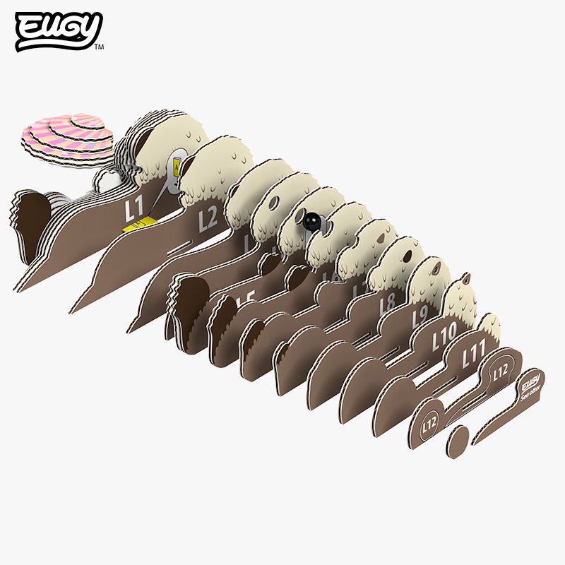 Eugy producten voldoen 100% aan de internationale veiligheidsnormen (EN71-1, 2, 3 en CPSIA). Een EUGY-pakket bevat 7 platte kaarten met individueel genummerde onderdelen, klaar om in elkaar te zetten.