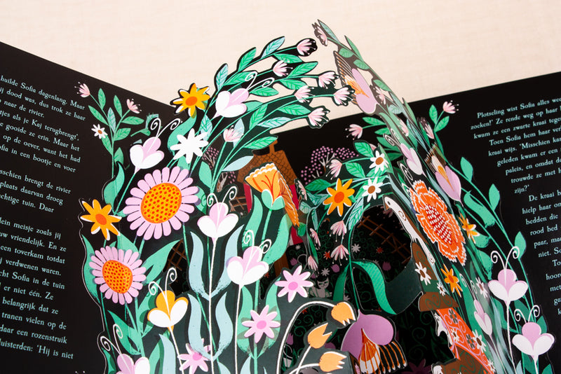 Ze vliegt te midden van wild wervelende sneeuwvlokken en als ze naar binnen gluurt, verschijnen er ijsbloemen op de ruiten.’ Als de winterse Sneeuwkoningin Sofia’s vriendje Kaj meeneemt, reist Sofia naar het verre Noorden om hem weer thuis te brengen. Een geliefd sprookje over moed, vastberadenheid en liefde.