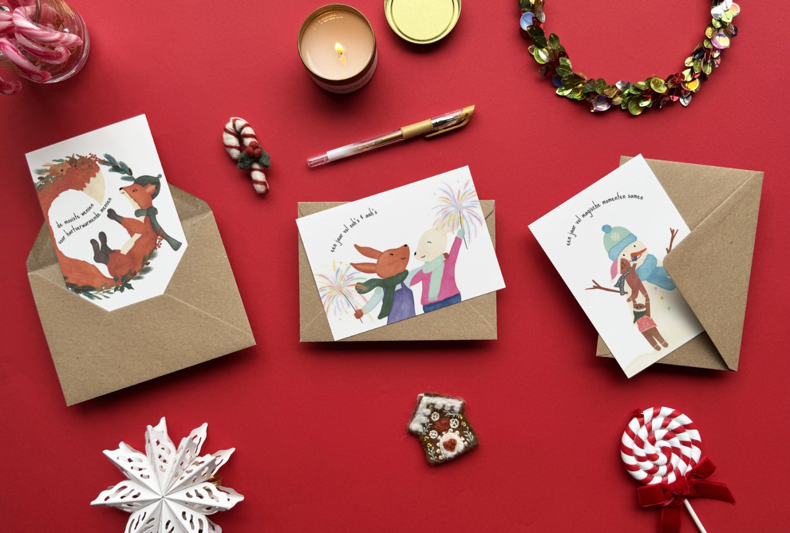 Een speelse boodschap die net zo feestelijk voelt als twinkelende lichtjes en samen klinken op een frisse start.