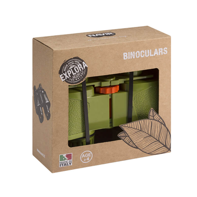 Verrekijker gemaakt van ECO ABS-plastic, geleverd met nekkoord en beschermkapjes die zijn uitgerust met een blokkadesysteem op de lenzen om verlies te voorkomen. De variabele interpupillaire afstand (van 49 tot 78 mm) maakt correct gebruik door kinderen mogelijk.