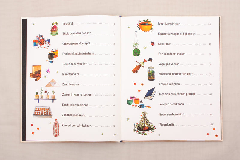 Tuinieren kan kinderen een hoop plezier geven. Dit boek staat boordevol inspirerende en eenvoudige tips voor alle nieuwsgierige jonge tuiniers, of ze nu een tuin tot hun beschikking hebben, een balkon of alleen een vensterbank. Ze kunnen het wonder van de natuur al ervaren door simpel weg zaadjes te planten en te kijken hoe die zich boven de aarde uitwurmen als zomerbloeiers, of als planten waar sappige eetbare bessen aan groeien. Of ze beginnen met het maken van een voederbal voor vogels, of een klein plantenterrarium voor in hun slaapkamer. En wat te denken van een natuurdagboek waar ze alles in kunnen opschrijven wat ze dagelijks opvalt, en waar ze ook hun eigen tuiniersactiviteiten in bijhouden? Kortom, waar en in wat voor seizoen dan ook, 'Groene vingers toveren' nodigt kinderen uit om met hun eigen handen in de aarde te wroeten en om de wondere wereld van de natuur te onderzoeken. Gewoon thuis of in de buurt!