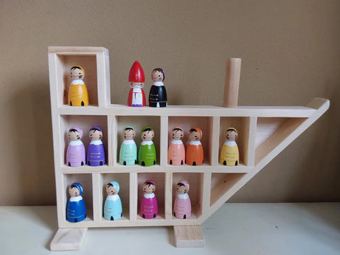 Deze houten stoomboot brengt direct de magie van het sinterklaasfeest in huis. Perfect als decoratie voor de sinterklaastafel of om samen met Sinterklaas, Piet en cadeautjes te gebruiken als speelset.