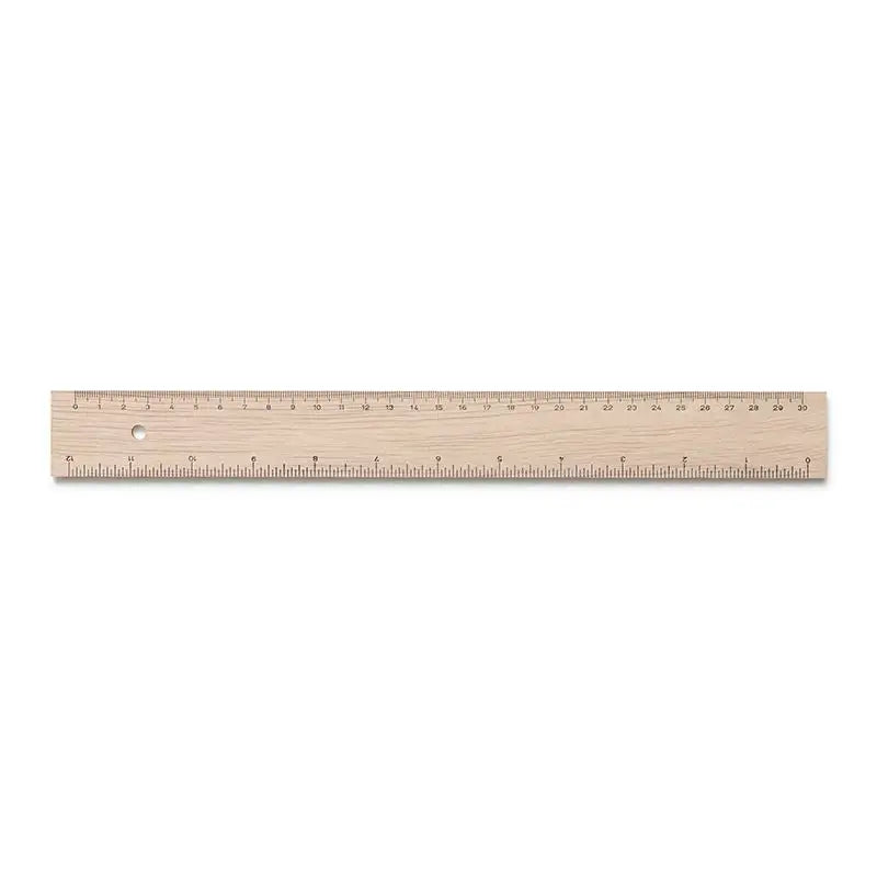 Dit houten liniaal is gemaakt van massief hout uit beheerde bosbouw, is 30cm lang en heeft zowel een cm alsook een inch schaal.