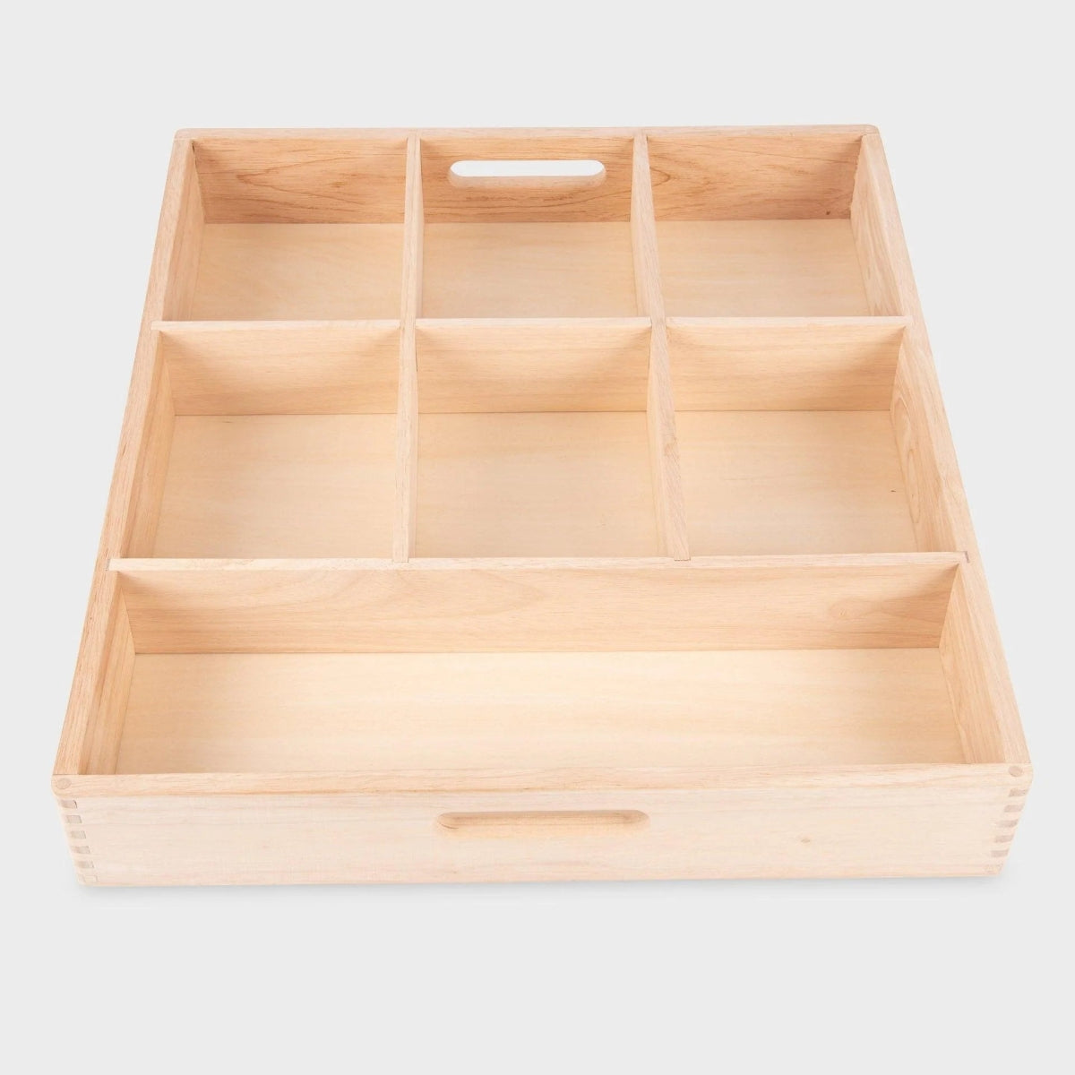 Wat is een betere manier om dierbare kleine voorwerpen te sorteren en te ordenen dan met deze houten sorteerbak? Een mooi en stevig beukenhouten dienblad met 7 opbergvakken. Een compacte en opgeruimde opbergoplossing waarmee je kindje voorwerpen op kleur of vorm kan sorteren en tentoonstellen. Perfect te combineren met de uitgebreide regenboog sets houten schatten.