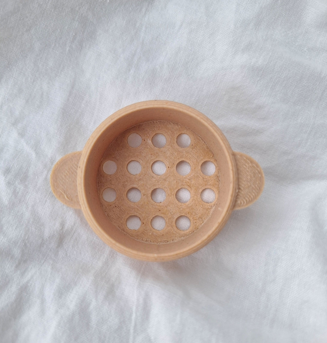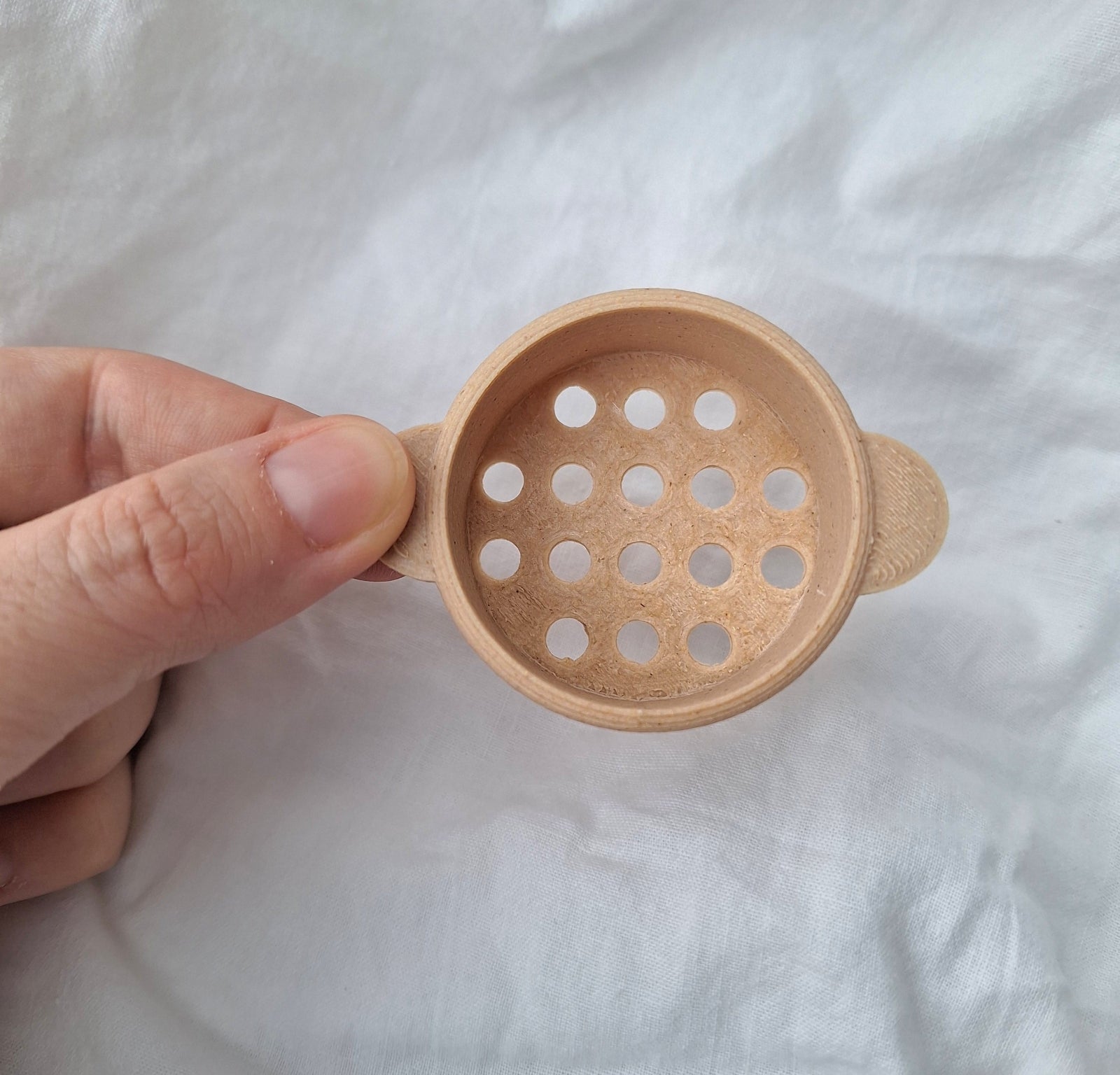 Dit milieuvriendelijk zeefje is gemaakt van gerecycleerd houtzaagsel en biologisch afbreekbaar plastic van plantaardige oorsprong. Dit materiaal zorgt voor een prachtige houtlook aan het zeefje en voelt robuust en sterk aan.