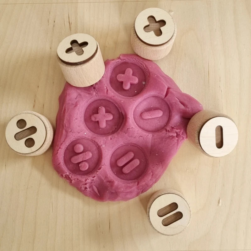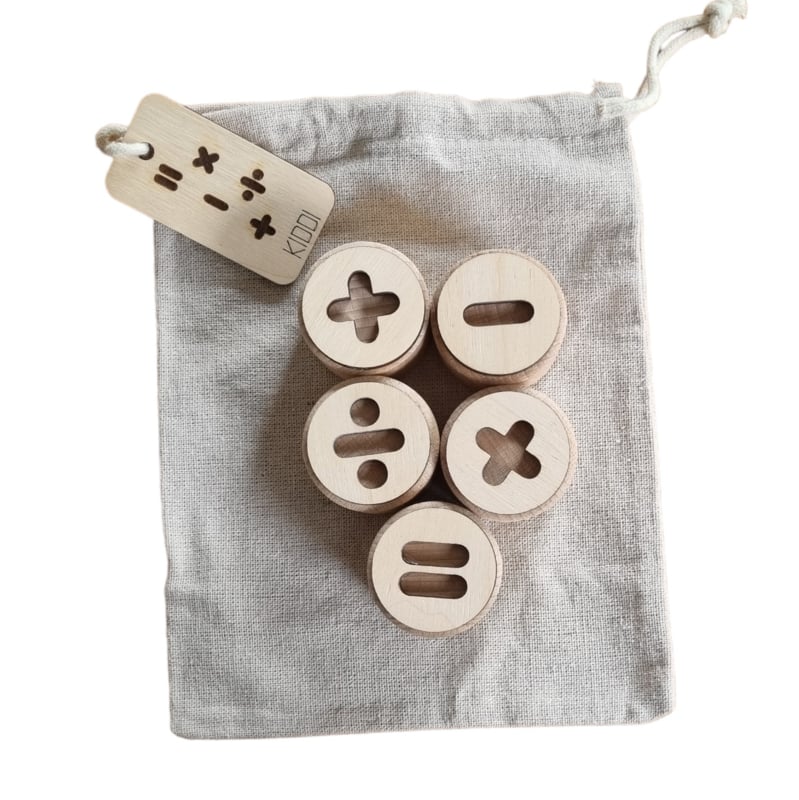 Deze stempelset bestaat uit 5 verschillende stempels in het thema 'rekenen' die samen in een ecologisch katoenen zakje zitten. In dit zakje is nog voldoende ruimte voor enkele rolstokken en/of uitstekers (ideaal voor sensorisch spel op verplaatsing!).