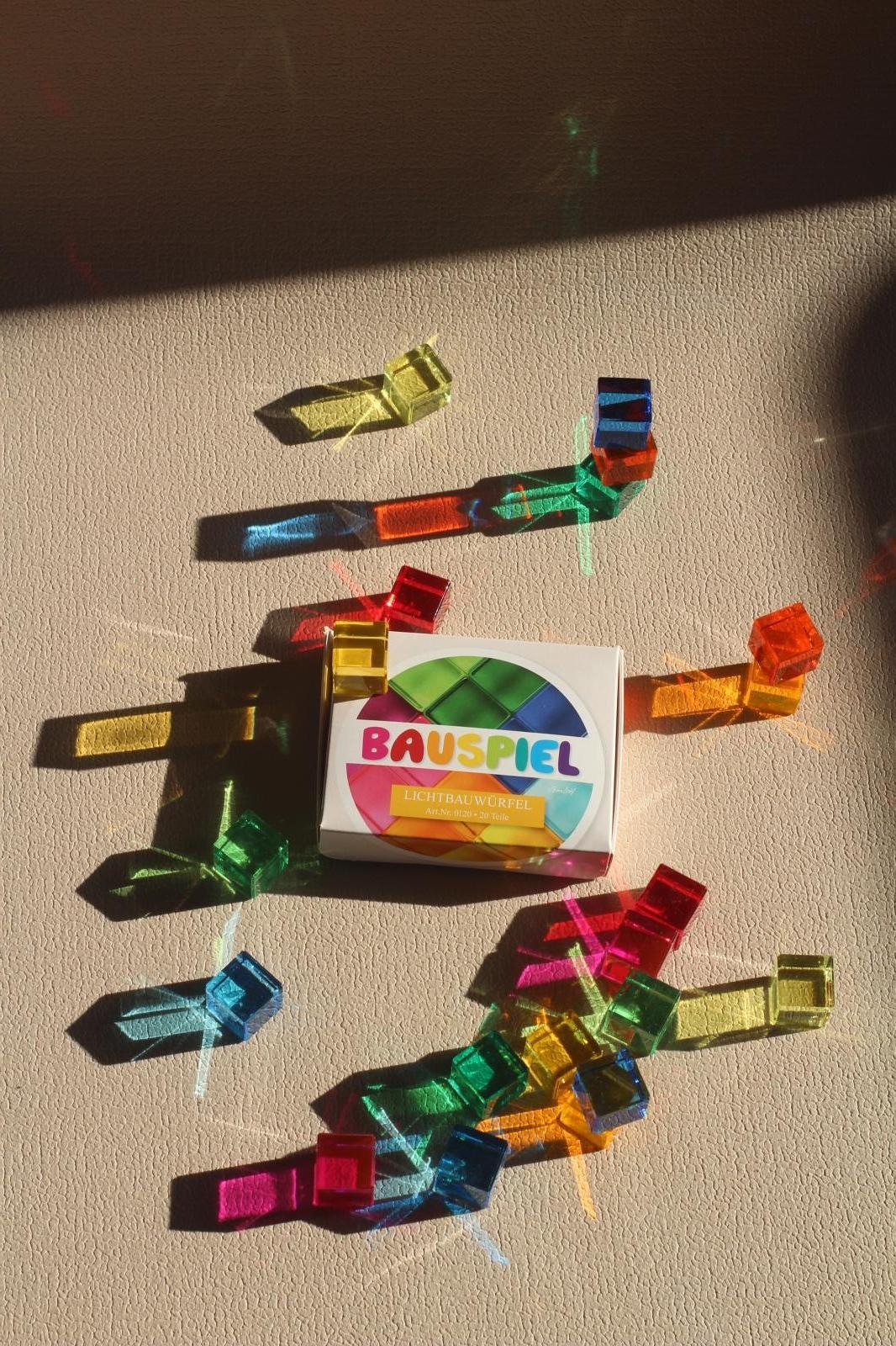 Deze set bestaat uit 20 vierkante lucent cubes in 10 verschillende kleuren, gemaakt van hoogwaardig acryl met een afmeting van 2,5 x 2,5 x 2,5cm.