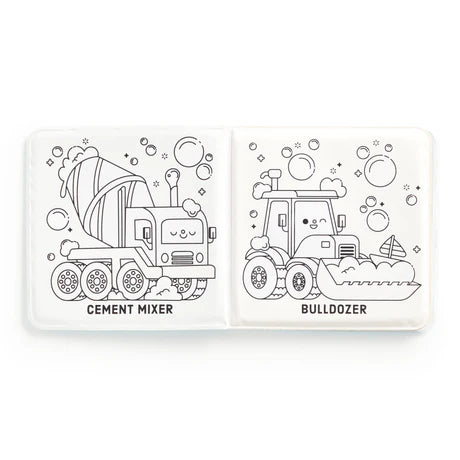 Schattige bouwvoertuigen verruilen aarde voor bubbels en vormen samen een zee van kleurrijk schuim. Dompel de pagina's gewoon in water en zie hoe de kleuren op magische wijze voor je ogen verschijnen. Van de feloranje graafmachines tot de levendige gele vrachtwagens, de transformatie zal de fantasie van je kleintje zeker prikkelen.