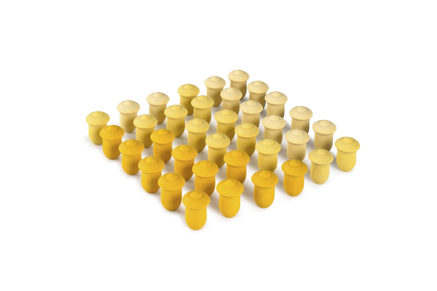 36 loose parts in de vorm van gele tulpen voor het maken van mandala's en elk ander vrij spel.