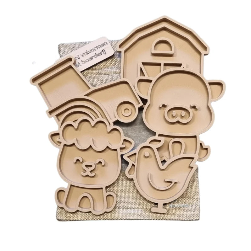 Vulvormen in het thema boerderij! Perfect te vullen met items zoals speelrijst of speelparels. Maar ook te gebruiken voor in nat spel. In een lekker klein en handig formaatje!