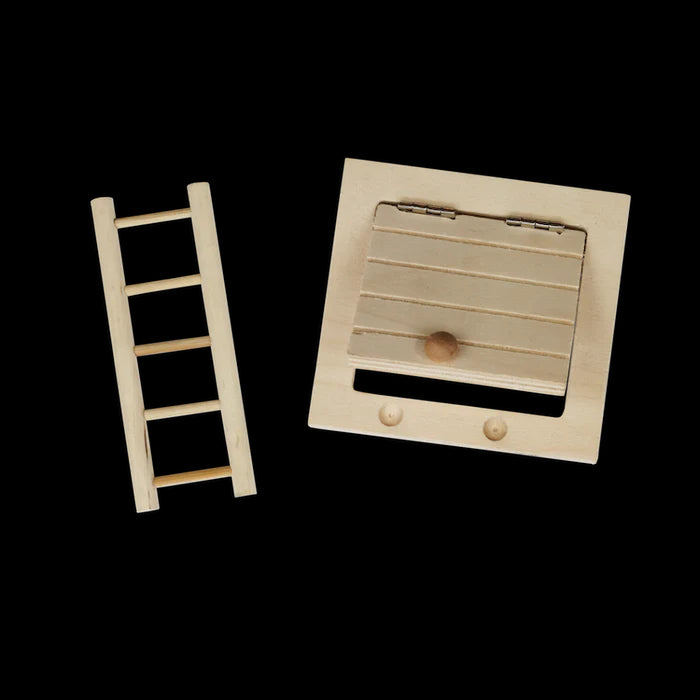 Geschikt vanaf 4 jaar | Afmeting luikje: 9 x 10 cm, ladder: 11 x 4 cm | Materiaal: Hout | FSC | CE