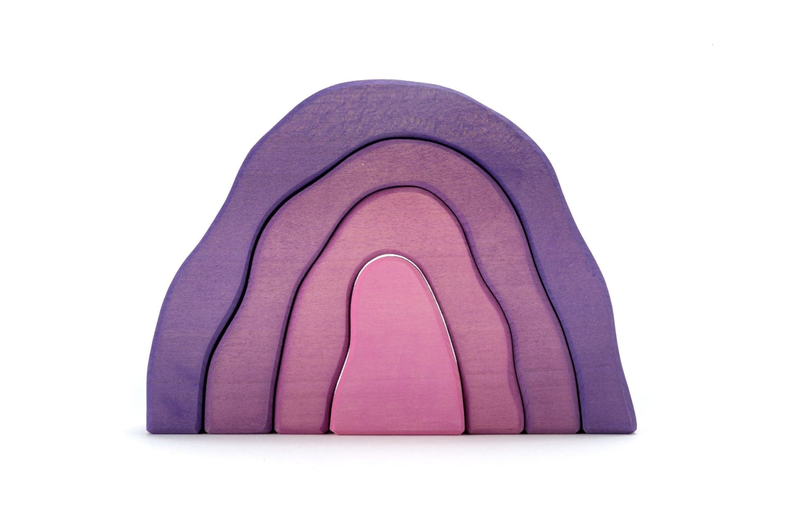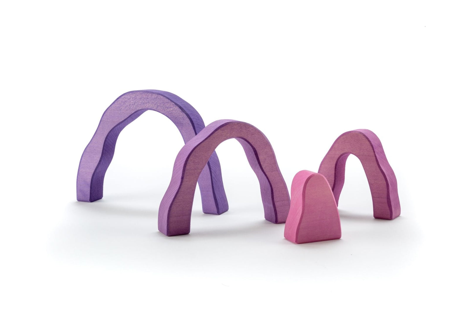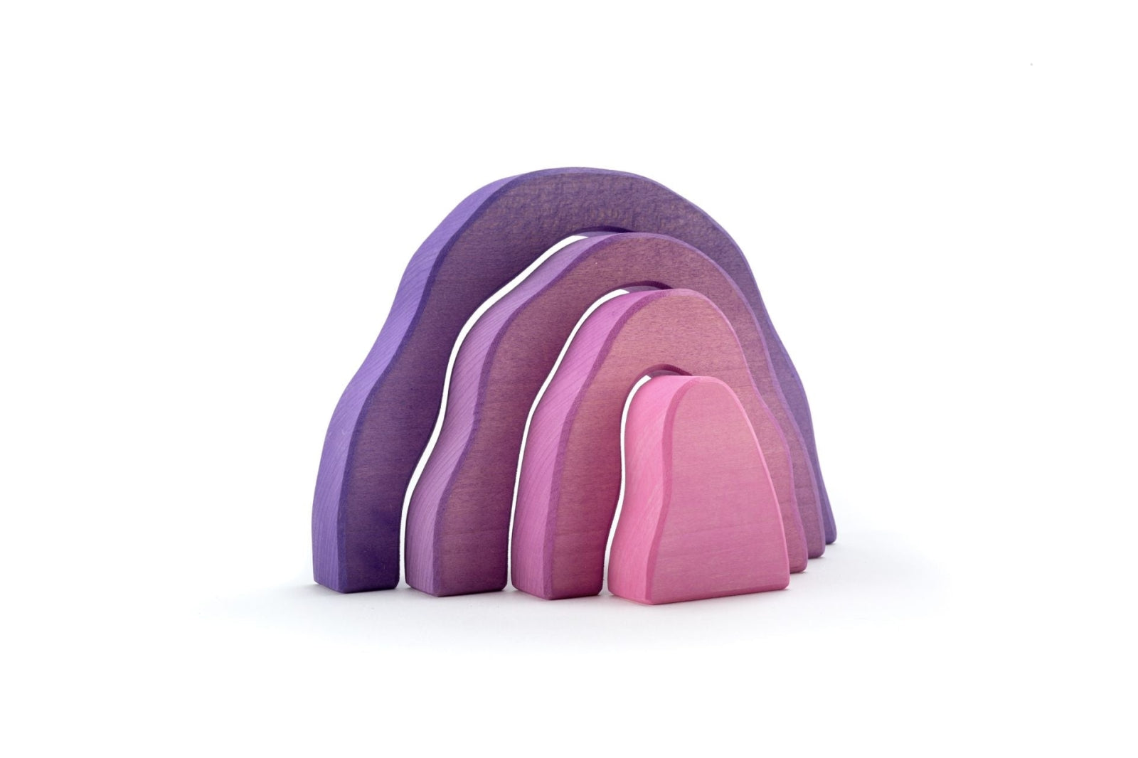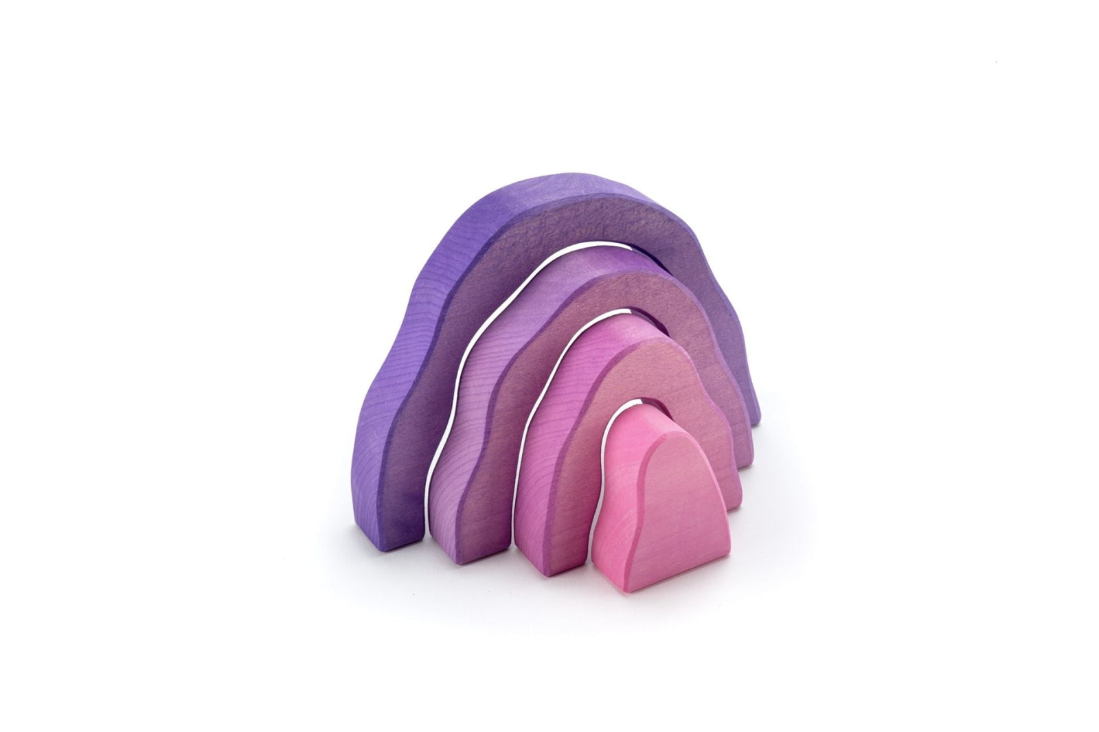 Het houten speelgoed in regenboog- of pastelkleuren wordt voorzien van een kleur door middel van veilige verf op waterbasis, en ook dit wordt allemaal met de hand gedaan.