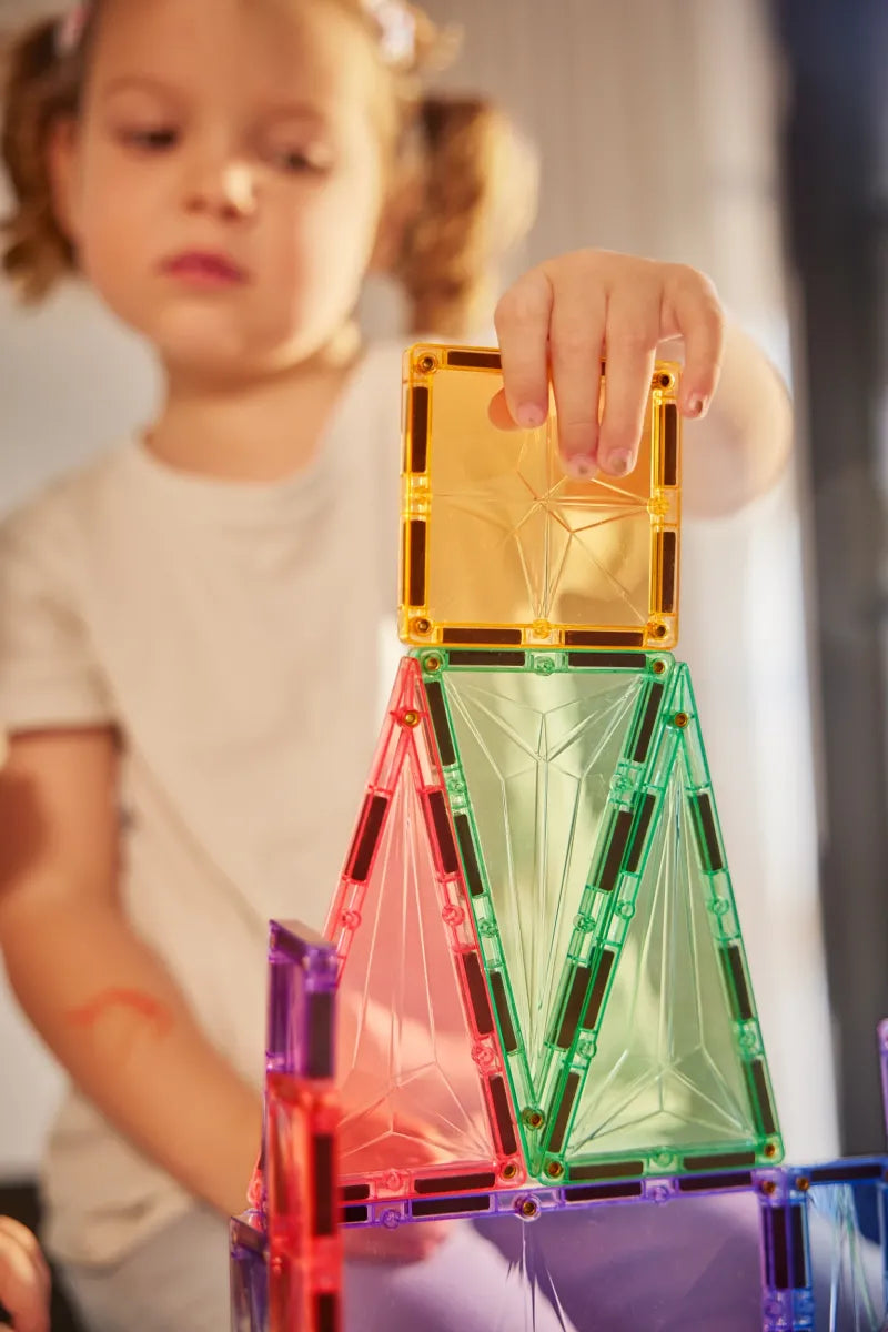 Samen of alleen, spelen met de magnetic tiles van Cleverclixx stimuleert STEAM-leren en helpt je kindje bij de ontwikkeling van de motorische ontwikkeling. Het wordt ook meer en meer ingezet in kleuter- en lagere scholen.