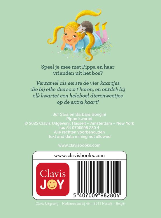 Speel je mee met Pippa en haar vrienden uit het bos? Verzamel als eerste de vier kaartjes die bij elke diersoort horen, en ontdek bij elk kwartet een heleboel dierenweetjes op de extra kaart!