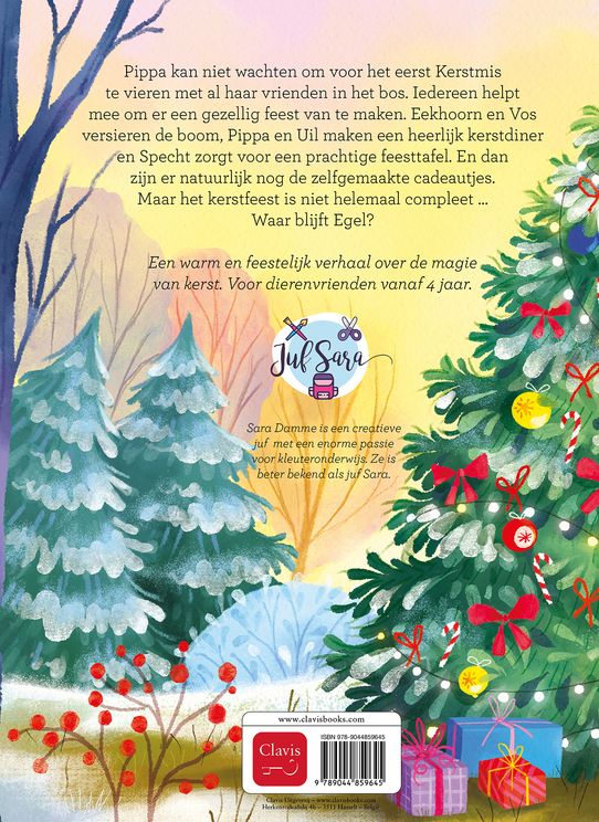 Pippa kan niet wachten om voor het eerst Kerstmis te vieren met al haar vrienden in het bos. Iedereen helpt mee om er een gezellig feest van te maken. Eekhoorn en Vos versieren de boom, Pippa en Uil maken een heerlijk kerstdiner en Specht zorgt voor een prachtige feesttafel. En dan zijn er natuurlijk nog de zelfgemaakte cadeautjes. Maar het kerstfeest is niet helemaal compleet … Waar blijft Egel?