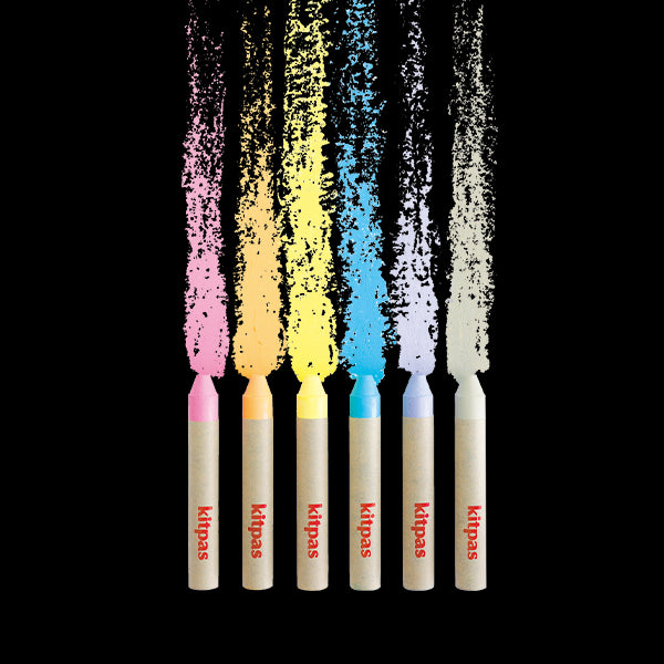 Waskrijtjes in verschillende pastelkleuren wat kleurt op papier, ramen, glas, whiteboards en spiegels.