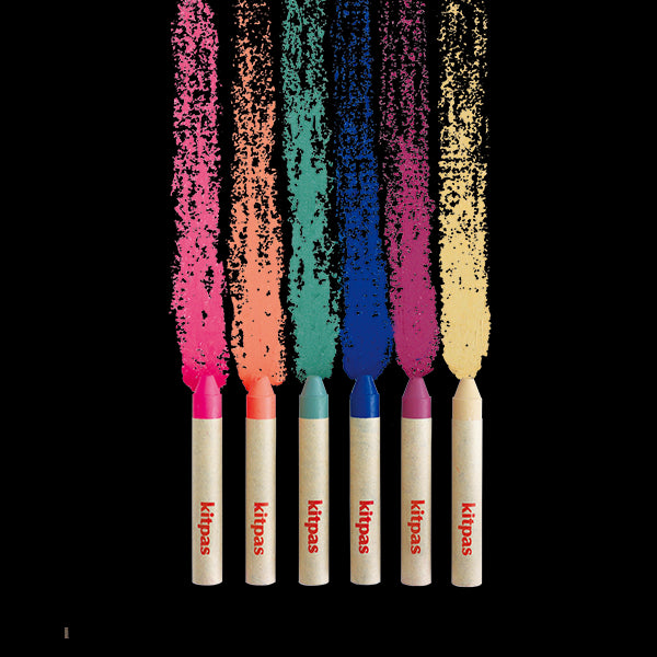 6 (raam)krijtjes in een doosje: Magenta・Orange・Moss Green・Navy・Burgundy・Ochre