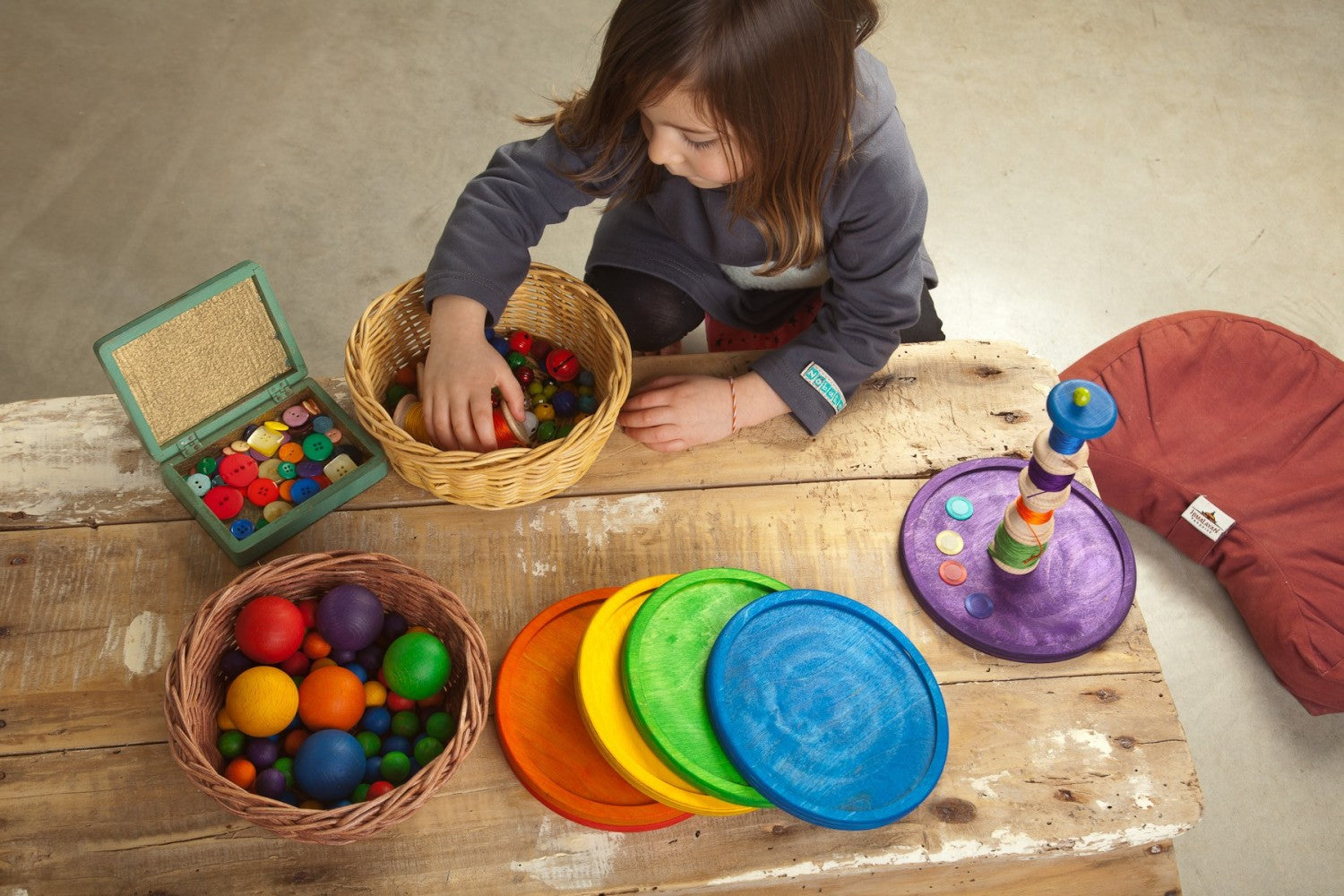 Het is gebruikelijk om te zien dat kinderen in hun speloppervlakken zoeken om hun Kleine Werelden te bouwen, hun poppen neer te zetten, hun creaties te maken en hun uitgevonden wereld na te bootsen. Zes platformen die uitnodigen tot een gebonden spel, waar elementen geplaatst, geclassificeerd, verzameld en gerangschikt kunnen worden...