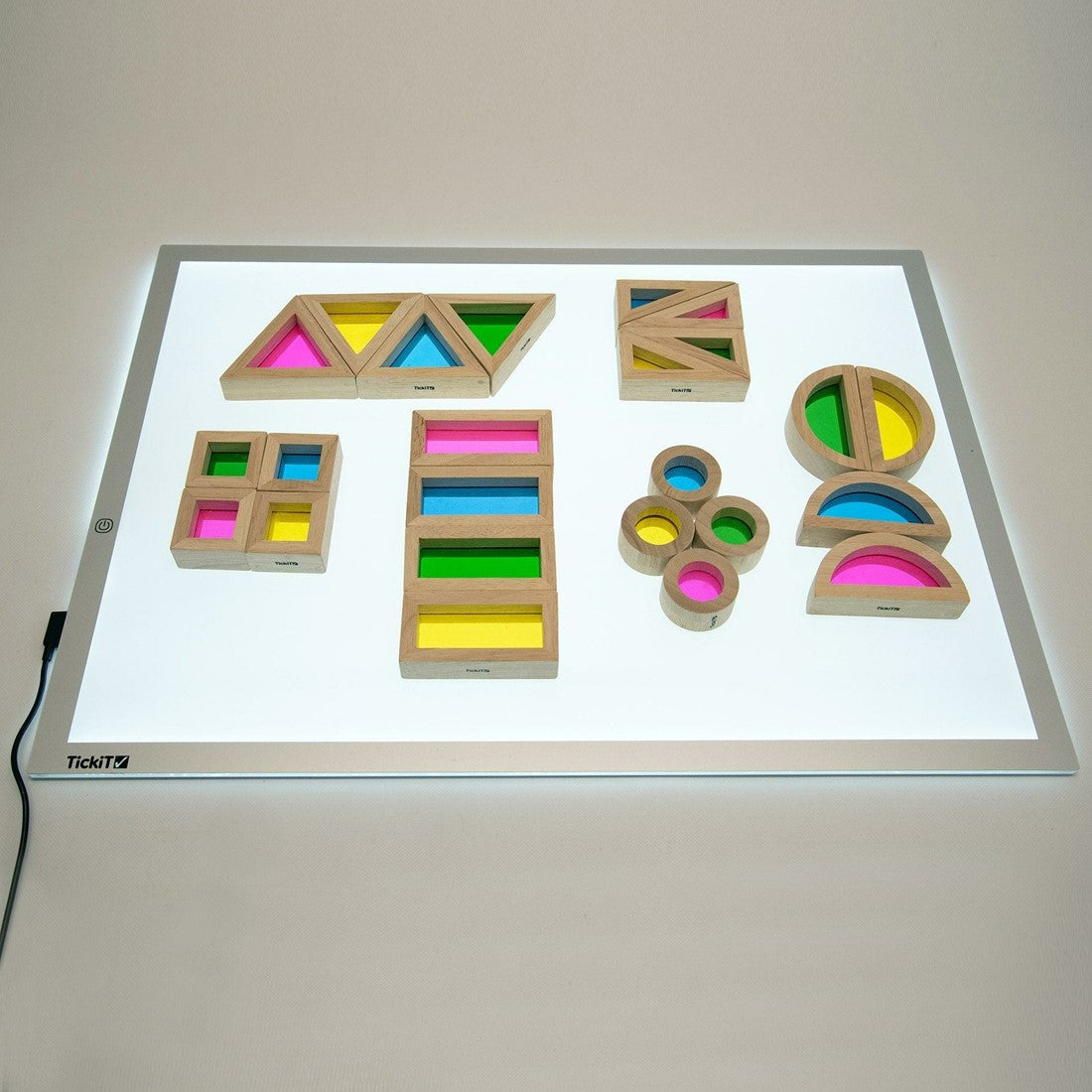 Ideaal voor het leren over vormen, kleurenmenging of eenvoudig blokken bouwen én ze ³zijn prachtig te gebruiken op een lichtpaneel.