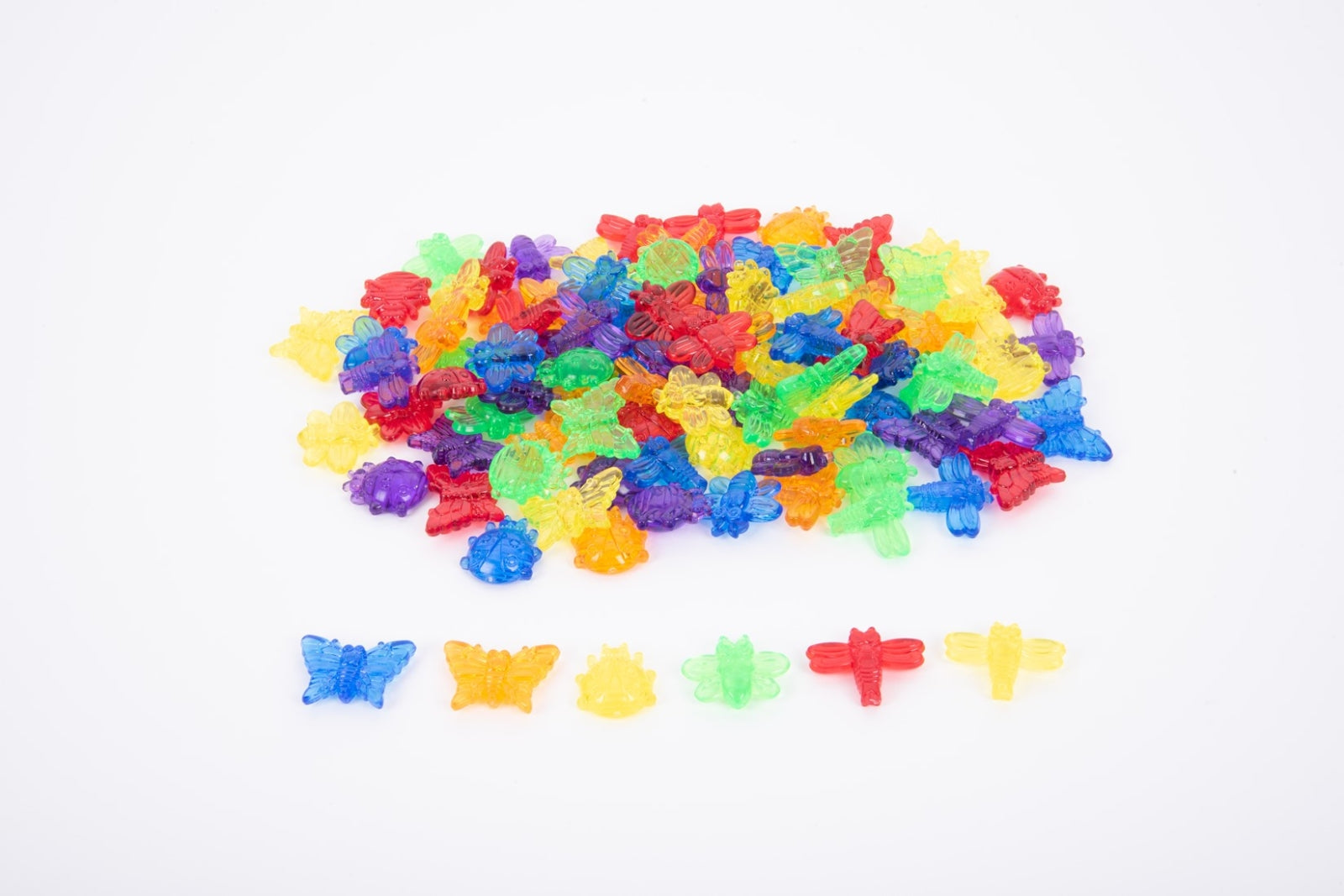 Je kindje kan vlinders, lieveheersbeestjes, libellen of bijen optellen, aftrekken, delen of vermenigvuldigen. De doorschijnende eigenschappen maken ze ideaal voor gebruik met een lichtpaneel om de verbeelding van je kindje te prikkelen en kleuren en de voelbare markeringen op elke vorm te verkennen.
