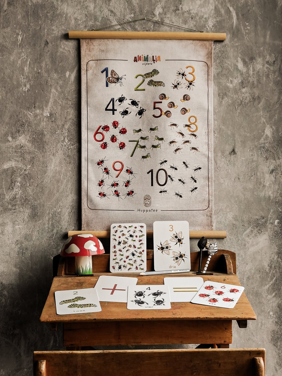 Tip: Deze schoolplaat past perfect bij de flashkaarten cijfers met kriebelbeestjes van Huppatee!