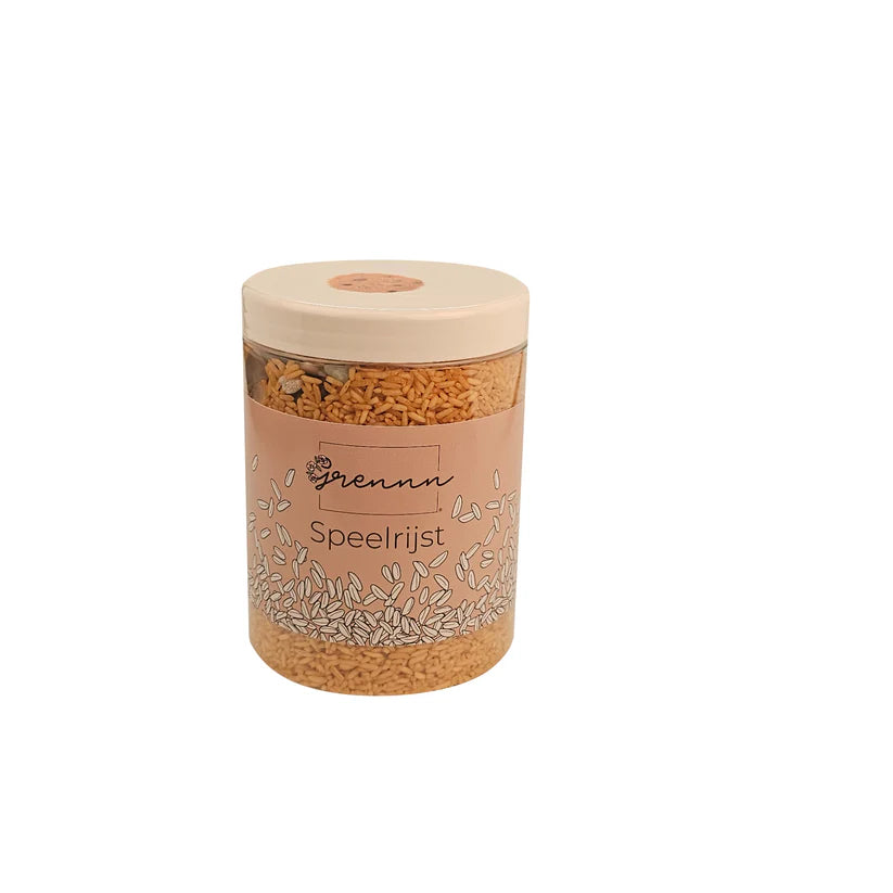Wanneer je kindje eenmaal is uitgespeeld is de speelrijst eenvoudig op te ruimen. De speelrijst kan heel eenvoudig weer terug in de voorraadpot en worden opgeborgen op een droge plek.