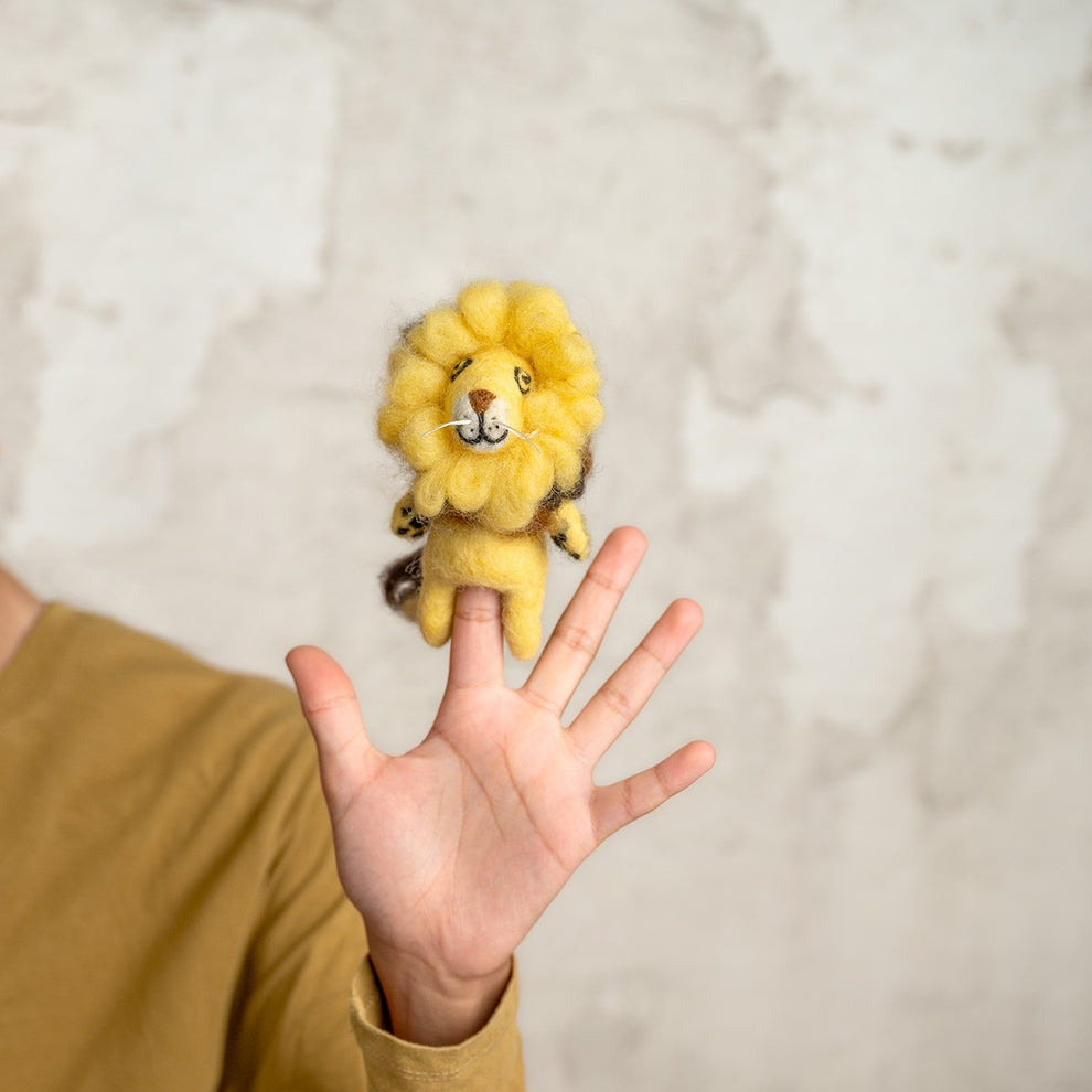 Keuze uit een leeuw of een krokodil als nieuwste generatie vingerpopjes: hoge kwaliteit wolvilten vingerpopje met massief vilten hoofdje.